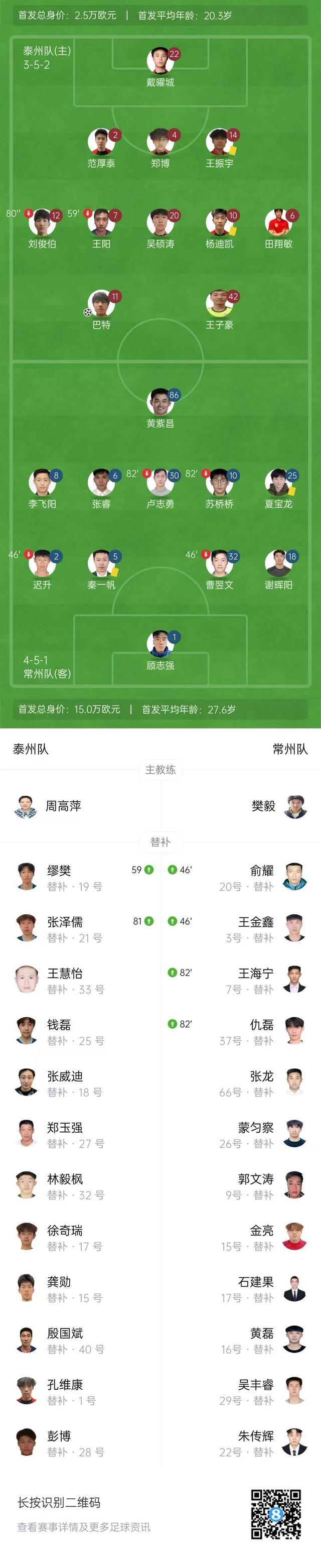 直播吧8月30日讯 北京时间8月30日苏超第10轮,泰州主场对阵常州,黄紫昌是中超河南队的球员,本场比赛是他在苏超首秀。上半场,巴特开场5分钟进球。黄紫昌造点并亲自主罚命中。下半场,两队都未能破门。最终泰州1-1常州。